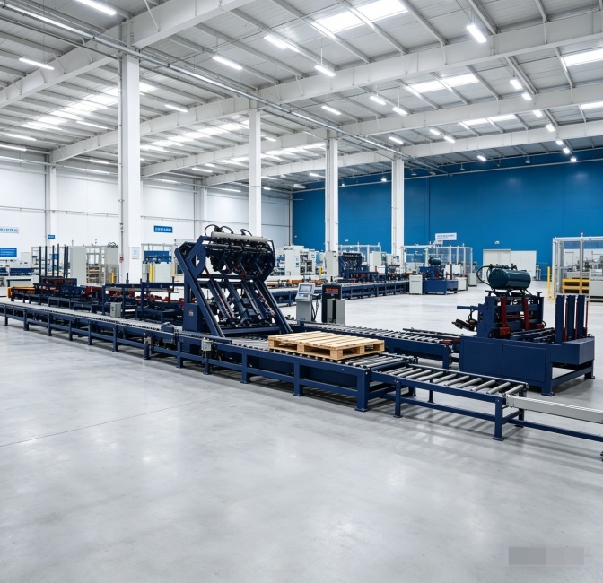 Pallet Palletizer & Conveyor System: Automated stacking and transport to minimize manual labor.